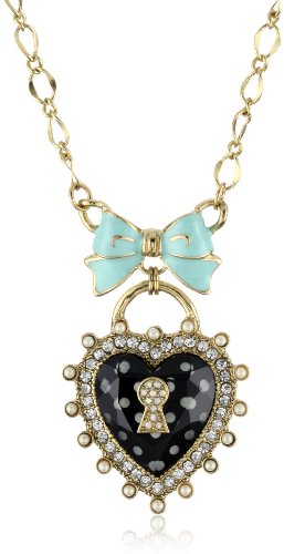 !: Shop Betsey Johnson Polka Dot Heart and Bow Pendant Necklace discount